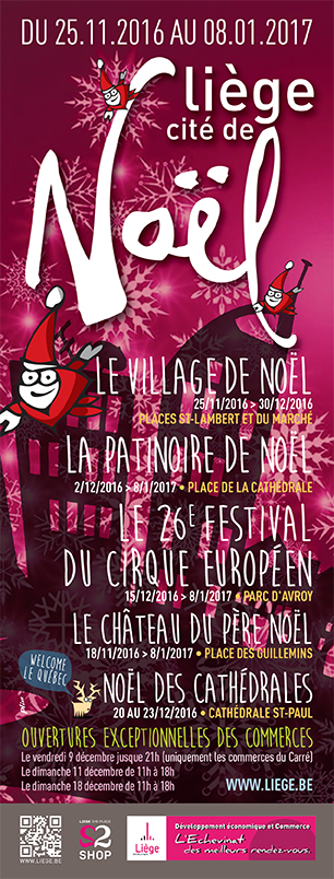 - L’information a aussi été intégrée dans la promotion de « Liège, Cité de Noël » dont notamment la conférence de presse du 9 novembre, une brochure A5 quadrilingue éditée à 50.000 exemplaires et distribuée dans le réseau touristique et culturel de BHS dans toute la Belgique ainsi qu’à Lille, Maastricht et Aix-la-Chapelle et ½ page dans le journal « Live in Luxembourg » (226.900 contacts).
